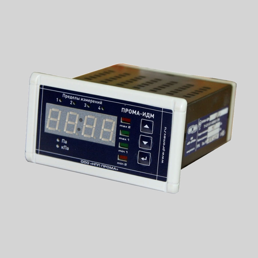 Измеритель дифференциального давления многофункциональный ПРОМА ИДМ-016-4ДД-1-2Х предназначен для индикации, преобразования перепада давления в унифицированный сигнал постоянного тока 4-20мА и формирования дискретных сигналов в систему коммутации при достижении пределов измеряемых параметров на трубопроводах транспортирующих природный газ и воздух. Технические характеристики на измеритель ИДМ-016-4ДД-1: